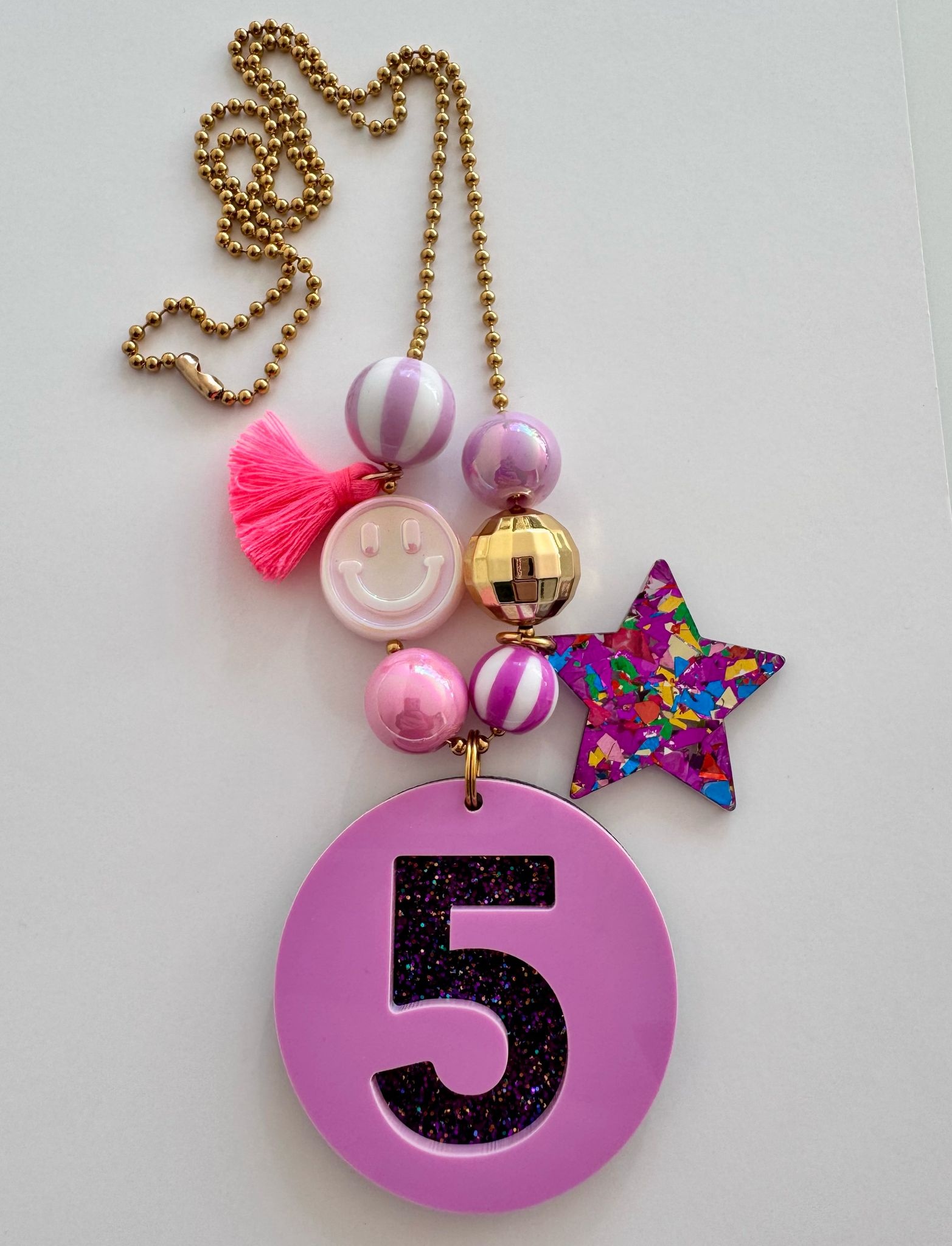Bymelo Verjaardagsketting Paars/ Glitter cijfer 5