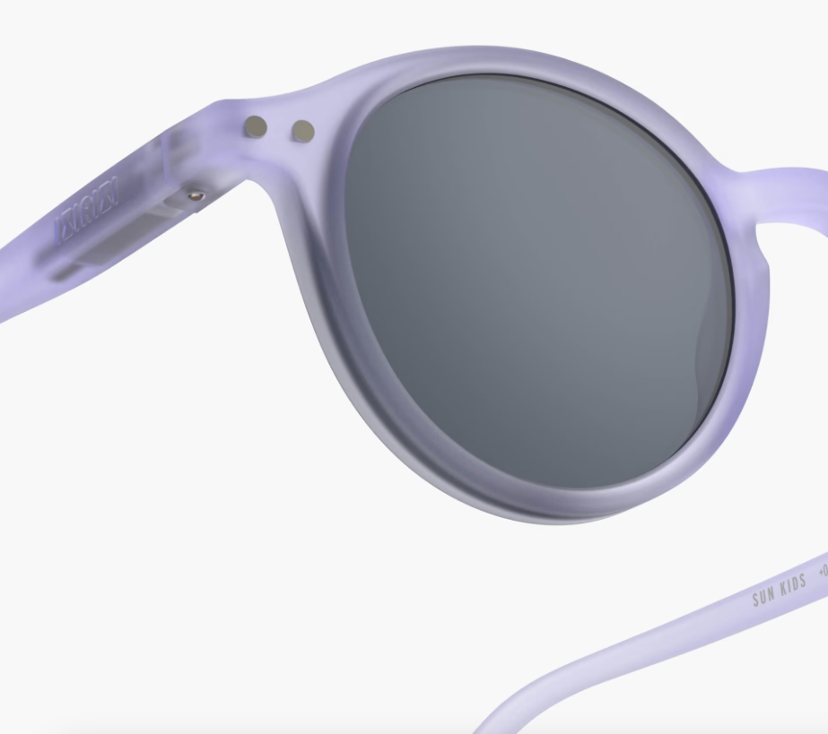 De #d Lavendel kinderzonnebril van Izipizi voor leeftijden 5 tot 7 jaar voegt charme en een poëtische toets toe aan hun look.