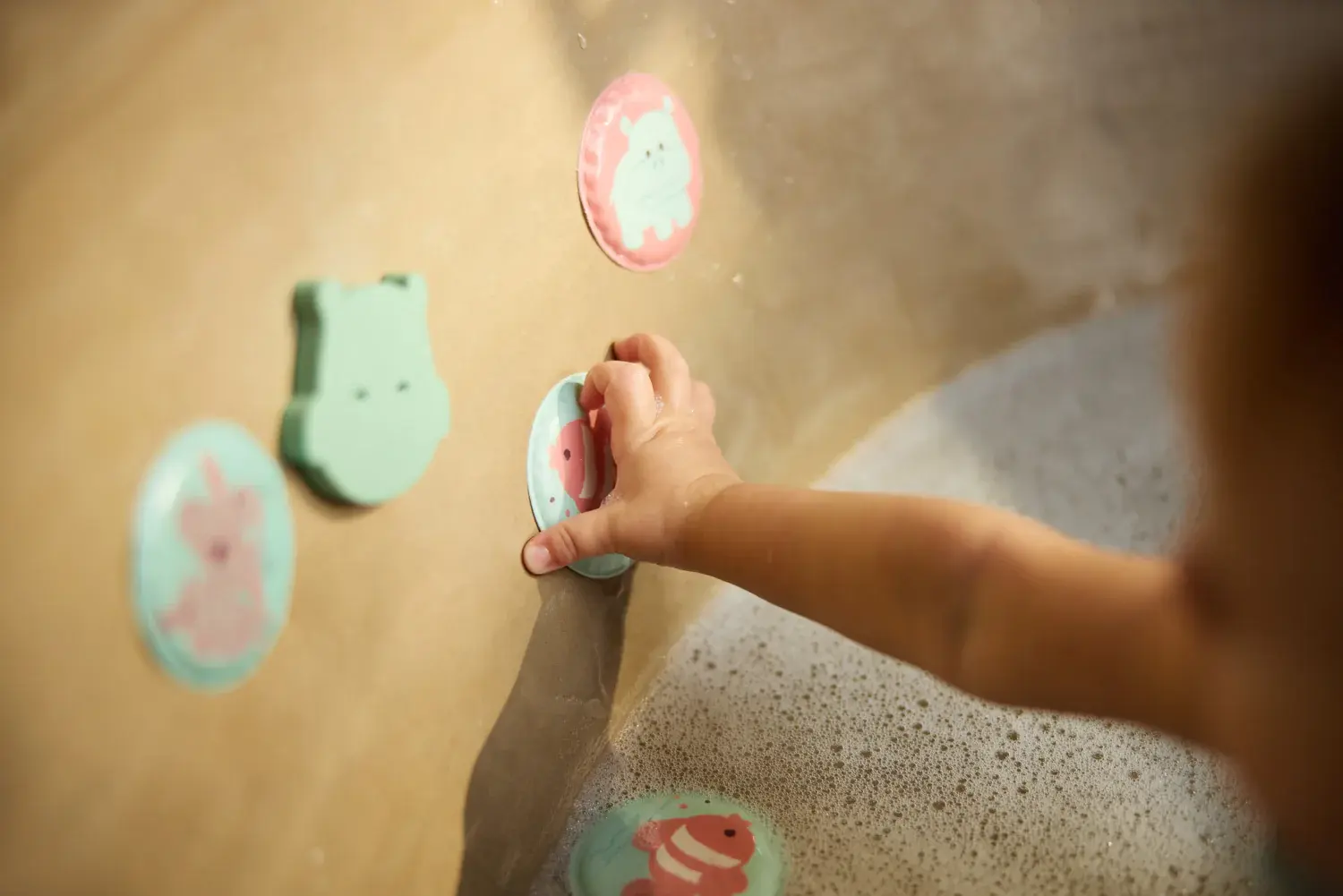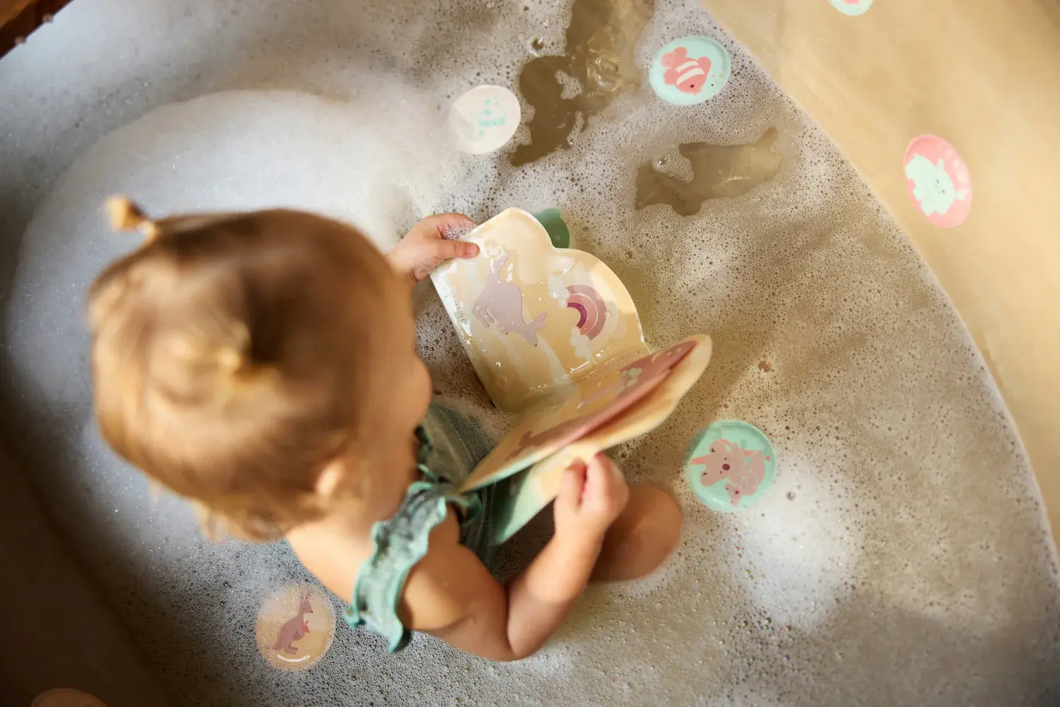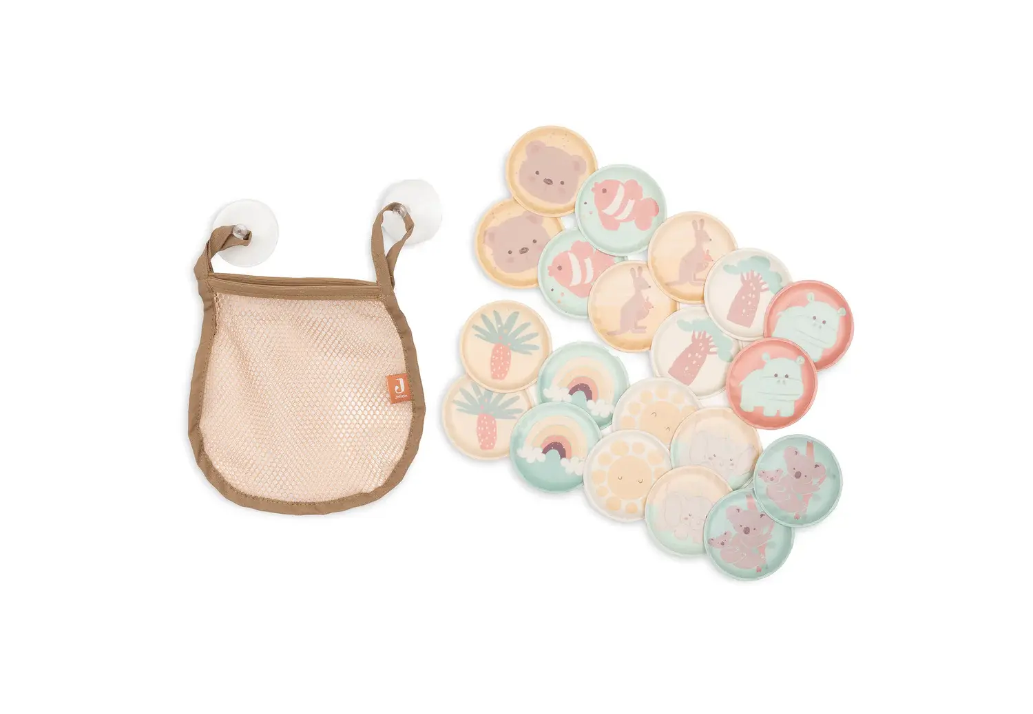 Memory spelen wordt nog leuker in bad. De zachte foam kaartjes drijven op het water en kunnen wanneer ze nat zijn geplakt worden tegen de wand. Zo kan je kindje draaien, zoeken en steeds weer nieuwe setjes bij elkaar vinden. De kaartjes zijn voorzien van vrolijke figuurtjes die makkelijk te herkennen zijn. Dat maakt het niet alleen gezellig om te spelen, maar helpt ook bij het oefenen van geheugen en concentratie. Na gebruik goed drogen en berg alles makkelijk op in het bijgeleverde netje. Met de zuignappen hang je dat handig aan de bad- of douchewand, zodat alle kaartjes netjes bij elkaar blijven.