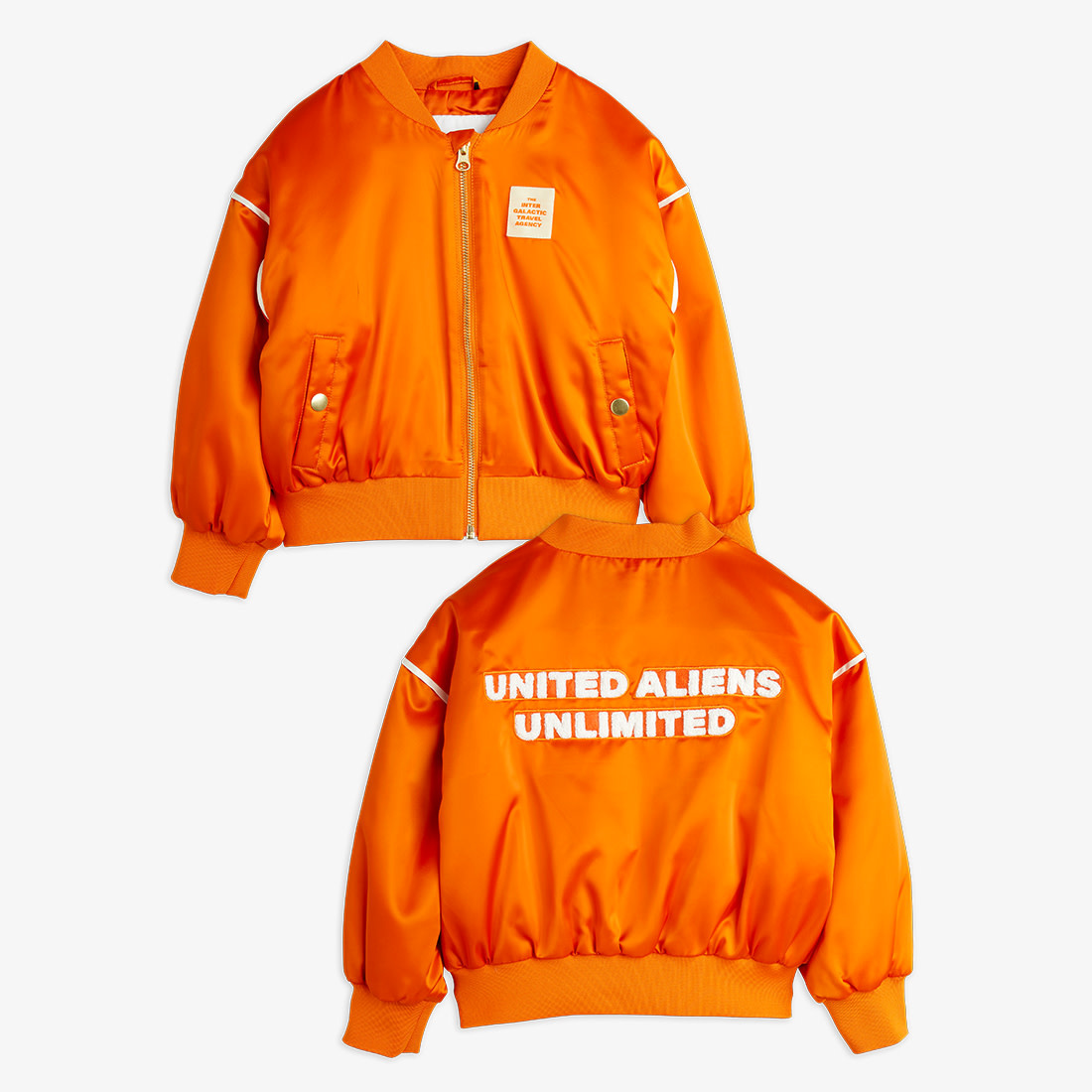 Mini Rodini Travel agency chenille satin baseball jacket Orange