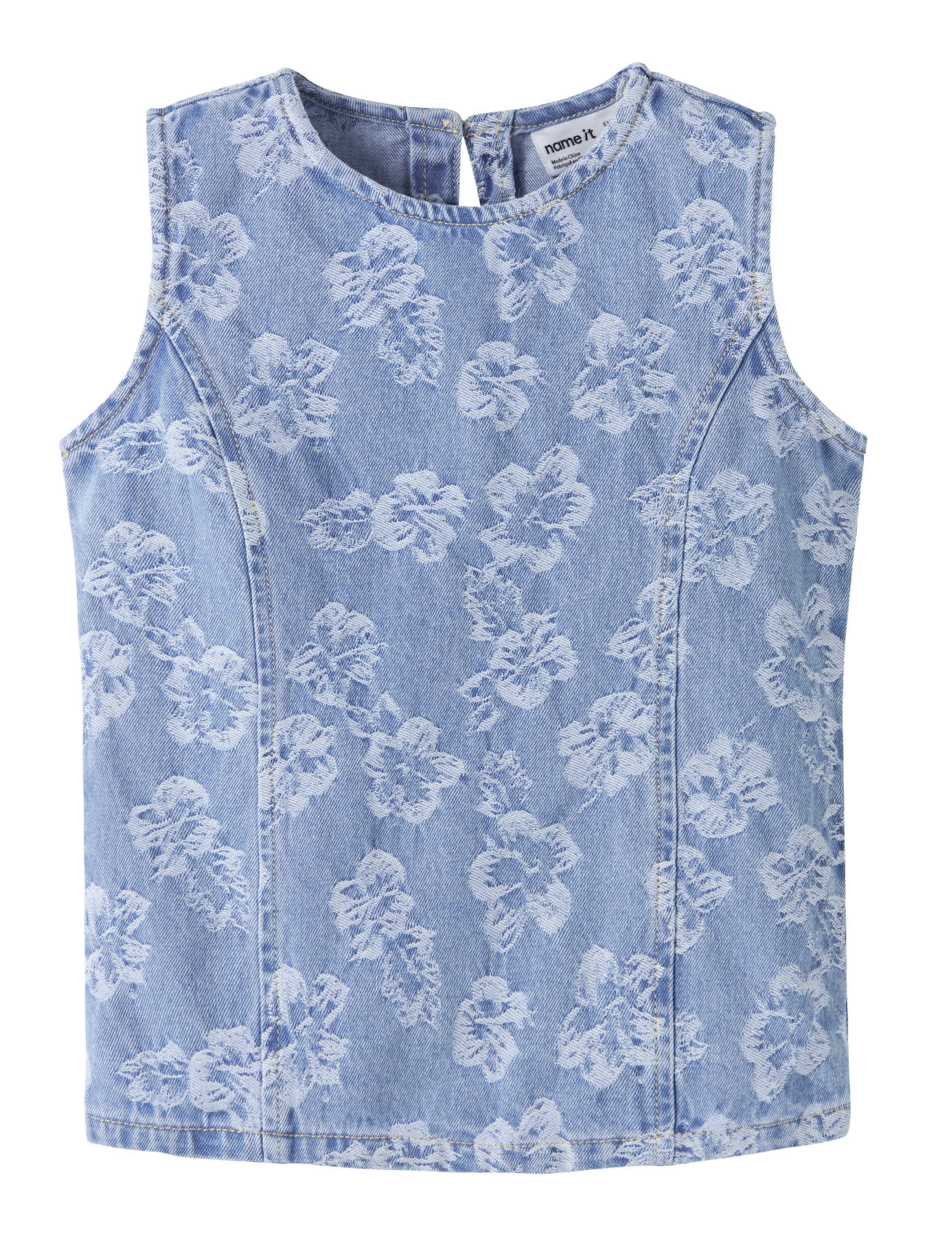 name it NKFLUCY SL DNM JACQ TOP 2440-JA H Light Blue Denim FLOWERS