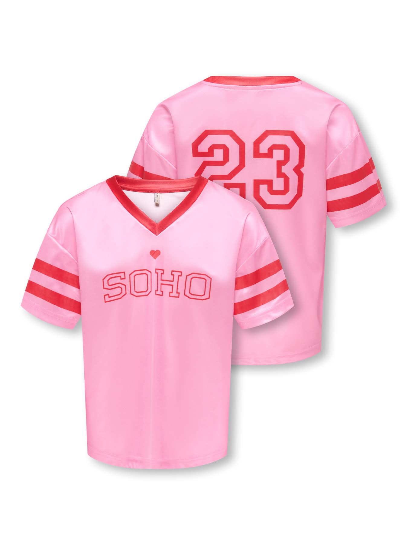 Only Kids KOGLULU S/S V-NECK SPORTY TOP CS JRS Begonia Pink Mars Red SOHO/23